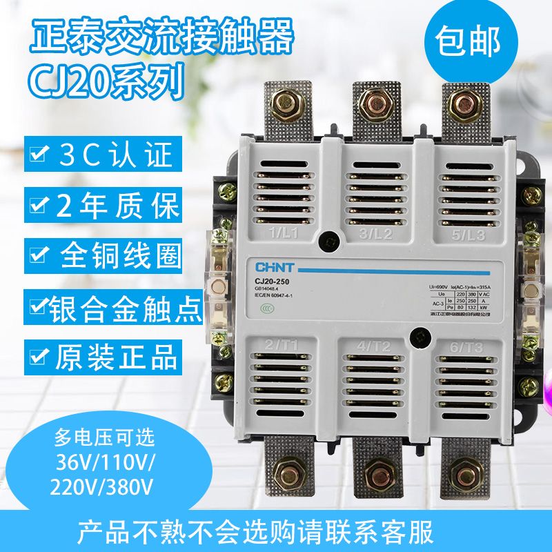 CHINT mine electric current AC contact CJ20-250A 220V 380V 110V industrial